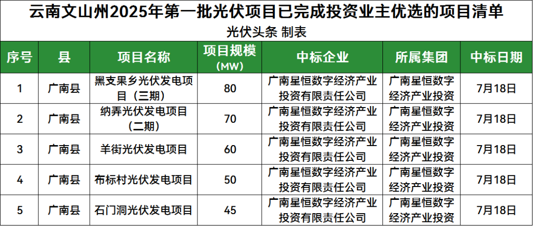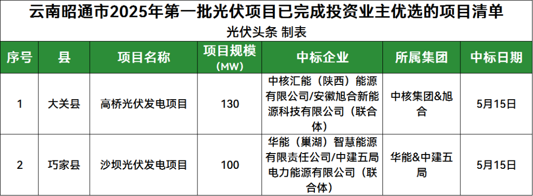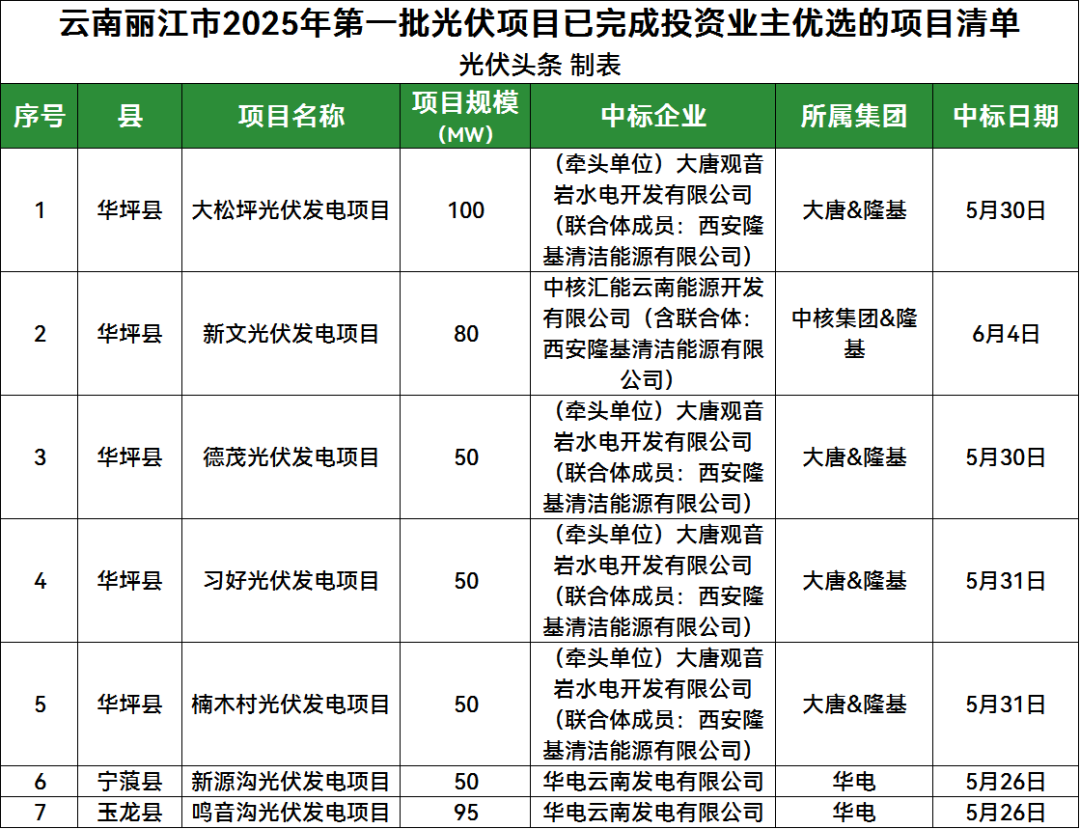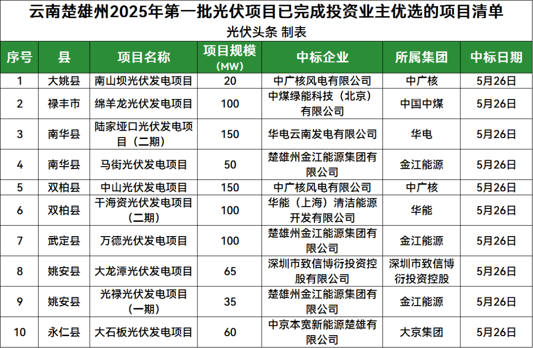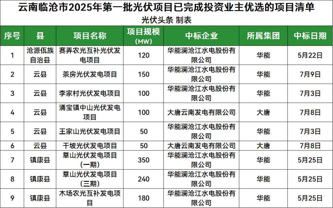 近期,云南省各地陆续公布2025年第一批光伏项目投资主体优选结果。