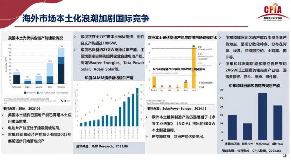 出口量:2025年1-6月,硅片、电池片、组件出口量分别同比下降7.5%、增长74.4%和下降2.82%