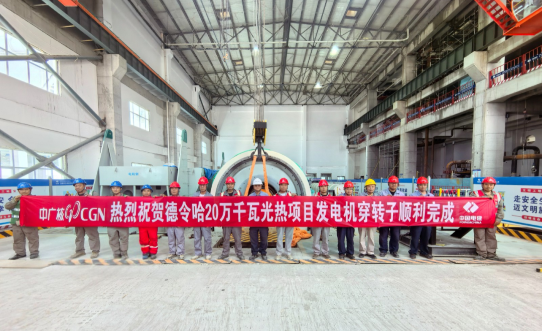 近日,德令哈光热项目发电机转子穿入定子一次成功。