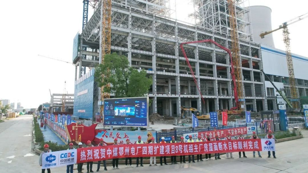 近日,鄂州四期项目8号机组主厂房实现屋面断水。