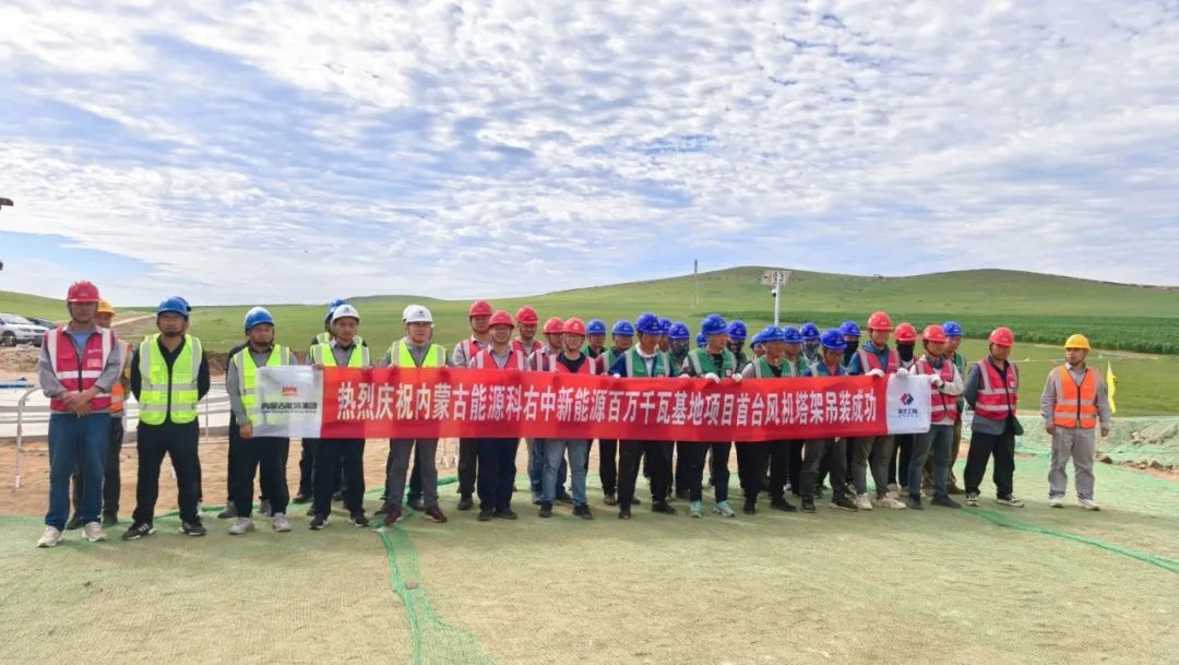 近日,蒙能科右中项目首台风机塔架吊装成功。该项目充分利用当地风能资源,助力“双碳”目标实现,有助于优化蒙东电网结构,带动就业与地方经济、推动乡村振兴,其成功运行将为高寒地区风电开发提供示范,巩固了我国在可再生能源领域的领先地位。