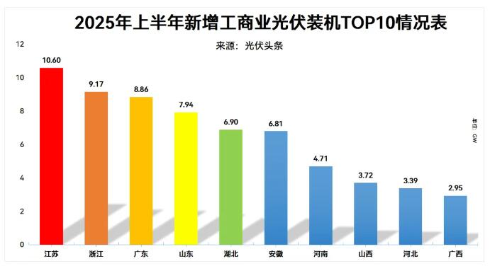 10、工商业光伏累计装机容量TOP10