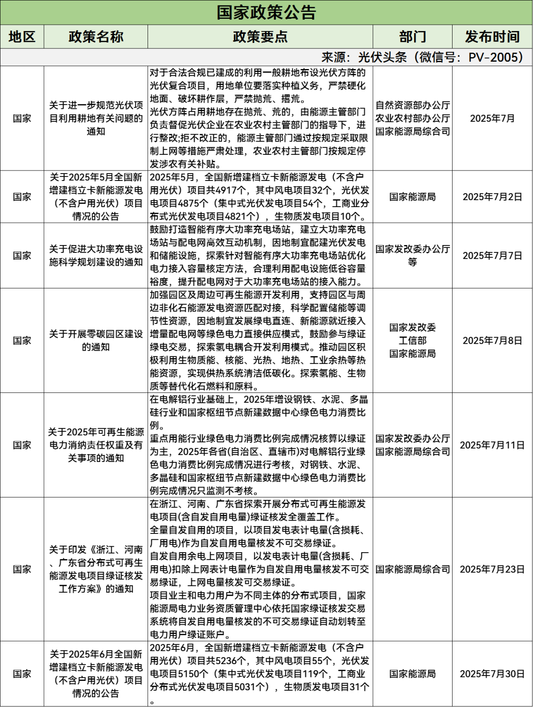 7月份,涉及光伏竞争性配置项目、建设方案、光伏建设指标的政策9条。