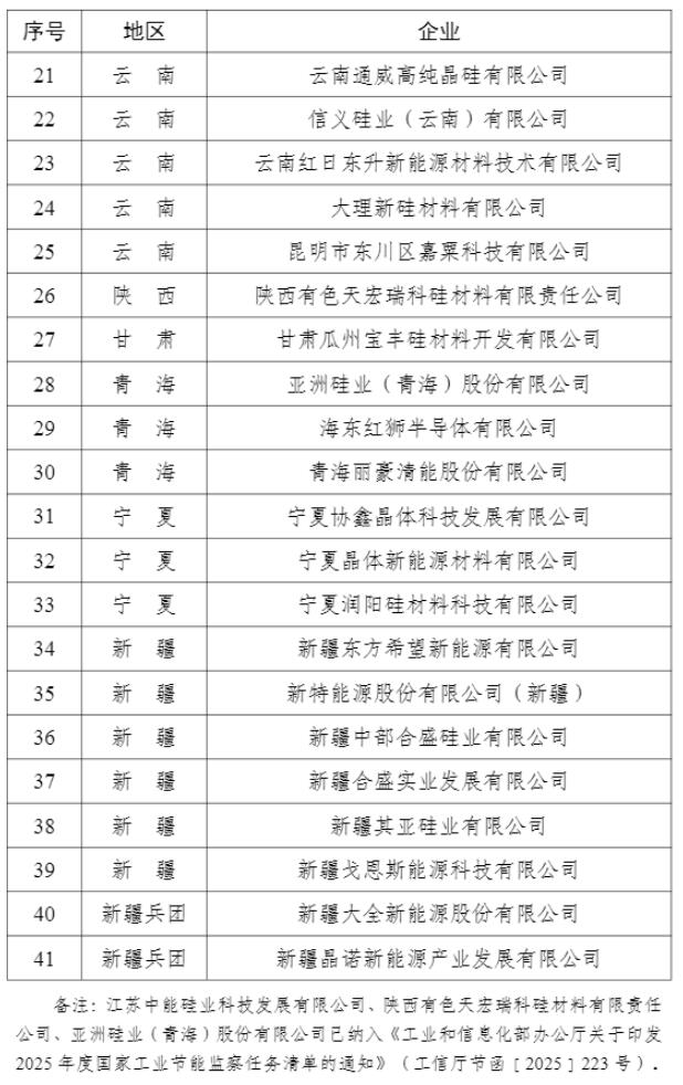 光伏头条获悉,8月1日,工业和信息化部办公厅印发《2025年度多晶硅行业专项节能监察任务清单的通知》。