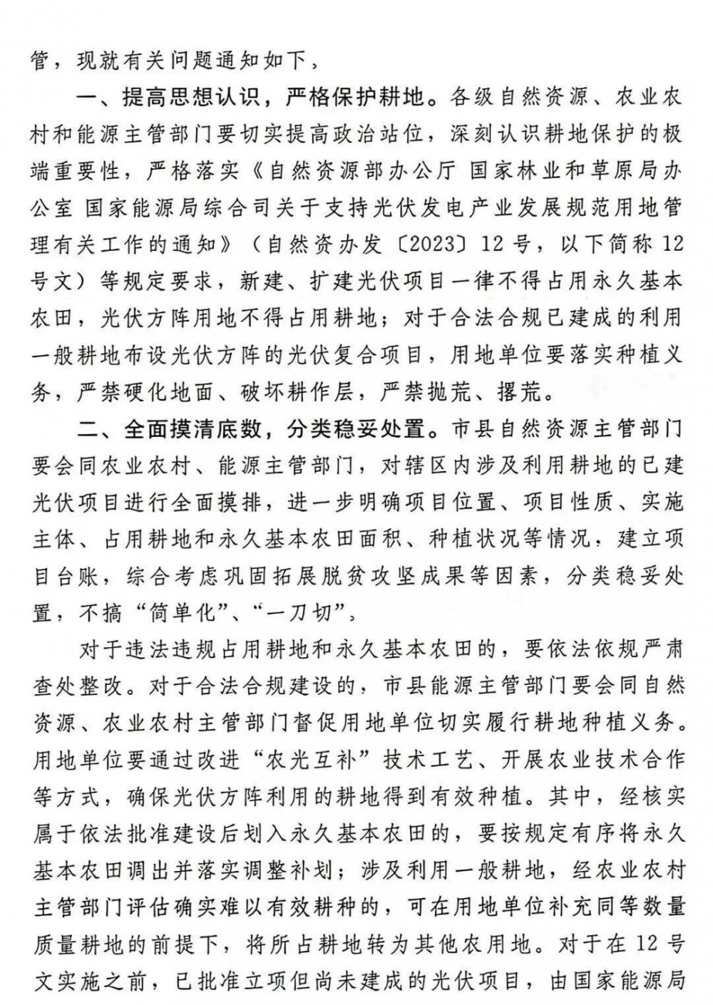 2024年9月,自然资源部、农业农村部、国家能源局联合发布《关于进一步规范光伏项目利用耕地有关问题的通知》。