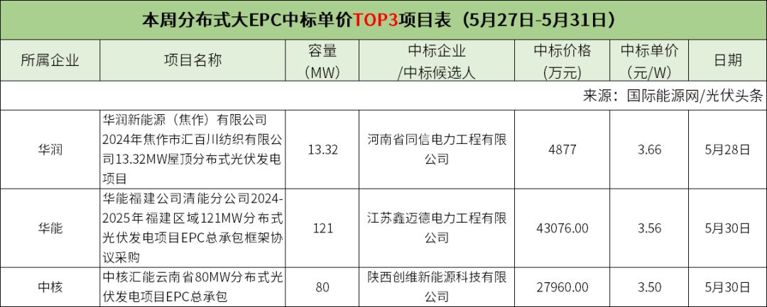 3个集中式大EPC项目,均价2.93元/W