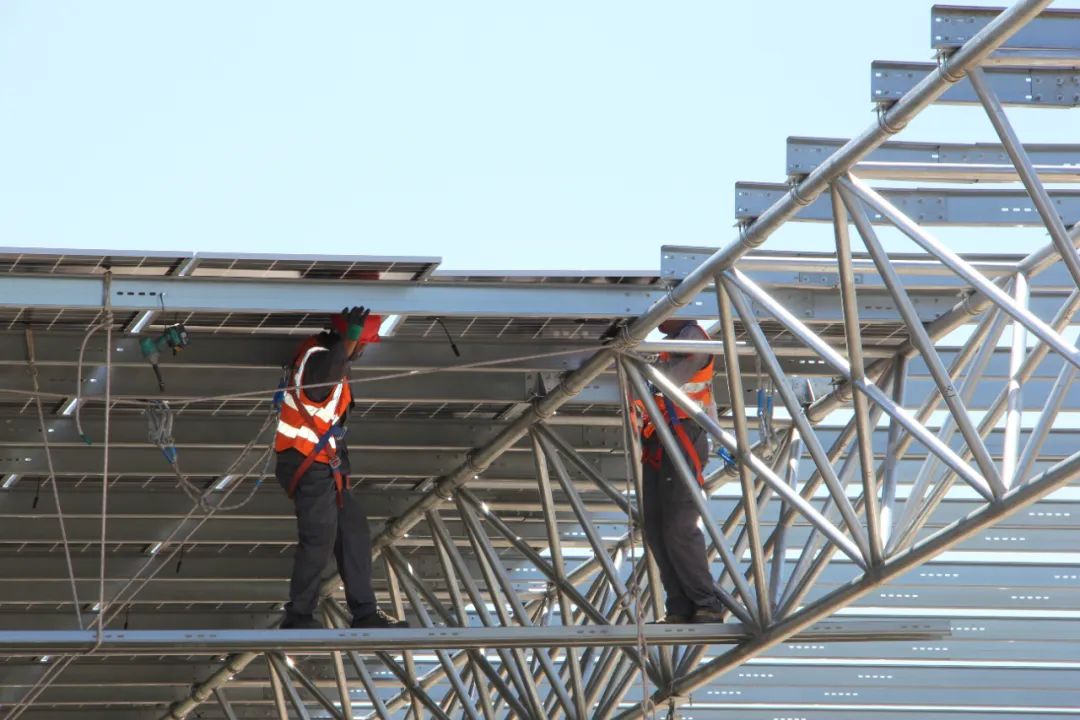 项目中桁架结构最大跨度达到34.7米,这一创新设计不仅提升了整体结构的稳定性,更在视觉效果上达到了极致。大跨度的桁架结构让光伏电站呈现出一种独特的艺术美感,与周围的环境和谐相融。不仅减少了结构立柱的数量,还使得光伏电站更加轻便、美观,成为城市中的一道亮丽风景线。