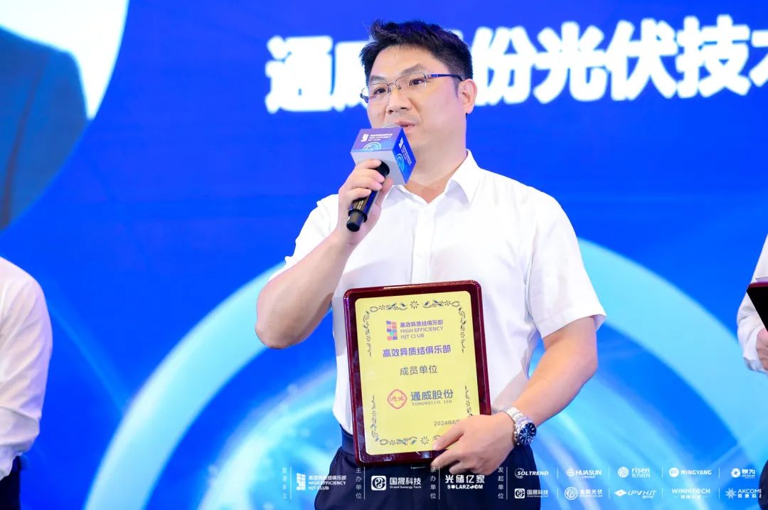 会议的高潮出现在新成员入会环节。在鸿钧、中建材浚鑫、上海电气恒羲之后,龙头通威也通过申请,正式加入高效异质结俱乐部,成为740W+俱乐部的一员。通威光伏研究院院长蒋方丹在入会仪式上表示,“(通威)作为全球高纯晶硅和太阳能电池龙头企业,一直致力于高效异质结电池技术的开发,在过去几年连续8次刷新2384*1303版型的异质结组件功率世界纪录,如今最新纪录765.18W正是通威在5月29日发布在异质结组件上得以实现。加入俱乐部,通威希望与各成员深入交流行业经验,助力异质结技术取得创新突破”,蒋方丹的方言引起了在场所有嘉宾、电站投资商、设计院、金融机构及媒体代表疯狂讨论。