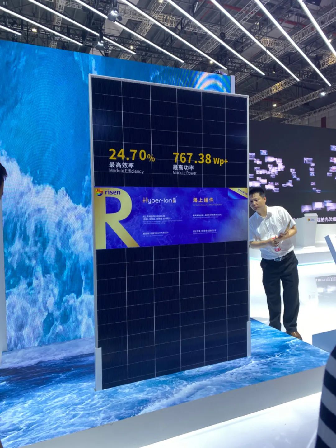 爱旭现场展出的“满屏”新品涵盖了集中式、工商业、户用三大场景,其中标准尺寸2382mm*1134mm版型的组件功率从655W提升至680W,效率高达25.2%。2465mm*1134mm版型更是首次进入700W时代。效率与性能傲立行业之巅的ABC“满屏”组件,将为全球客户创造前所未有的价值收益。