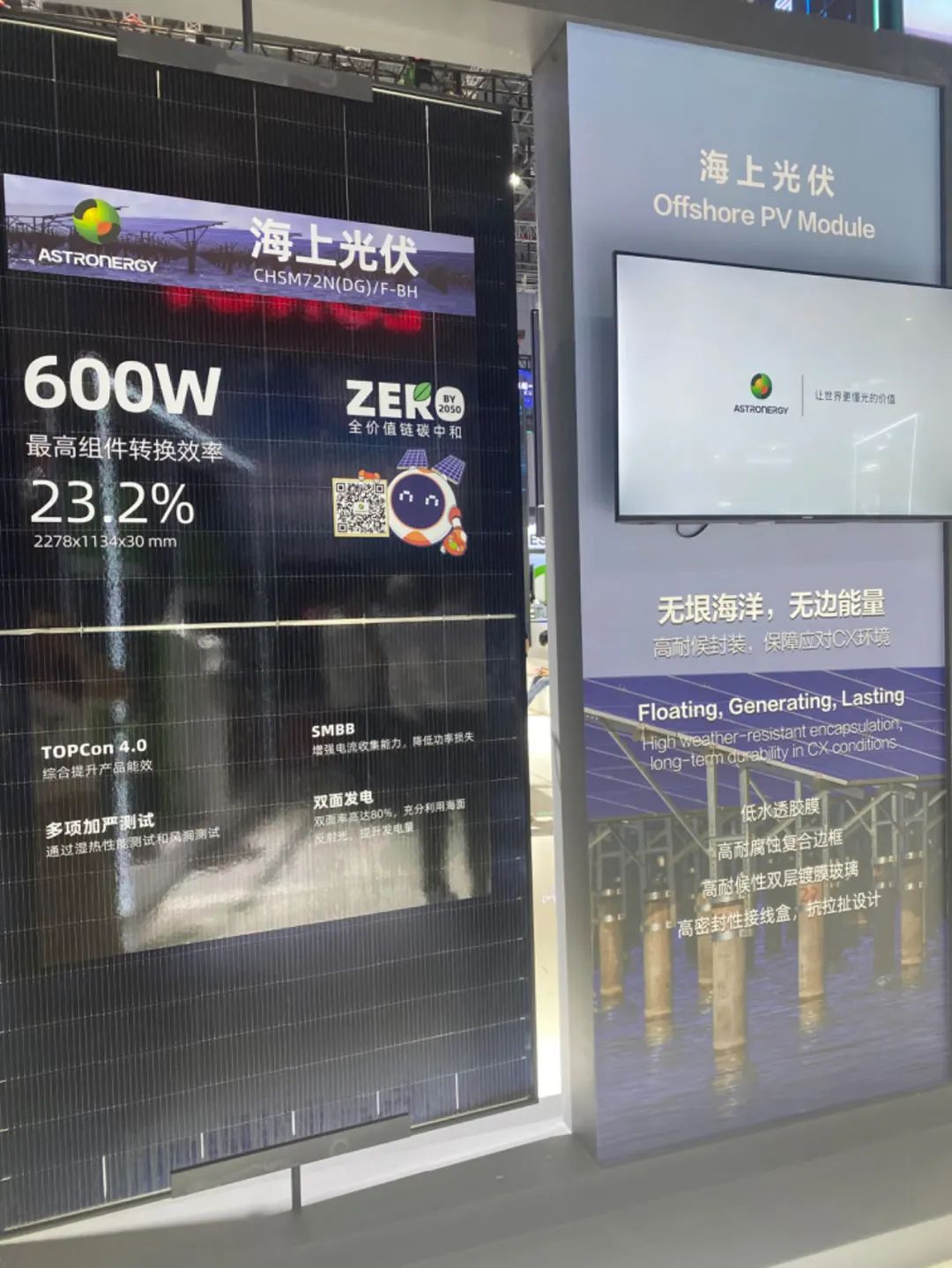 /光伏头条(PV-2005)梳理后发现,此次SNEC展会上,晶澳、正泰新能、华晟新能源、英利能源、阿特斯、东方日升、中节能太阳能、国电投新能源等企业推出了专为海上光伏量身打造的组件产品。