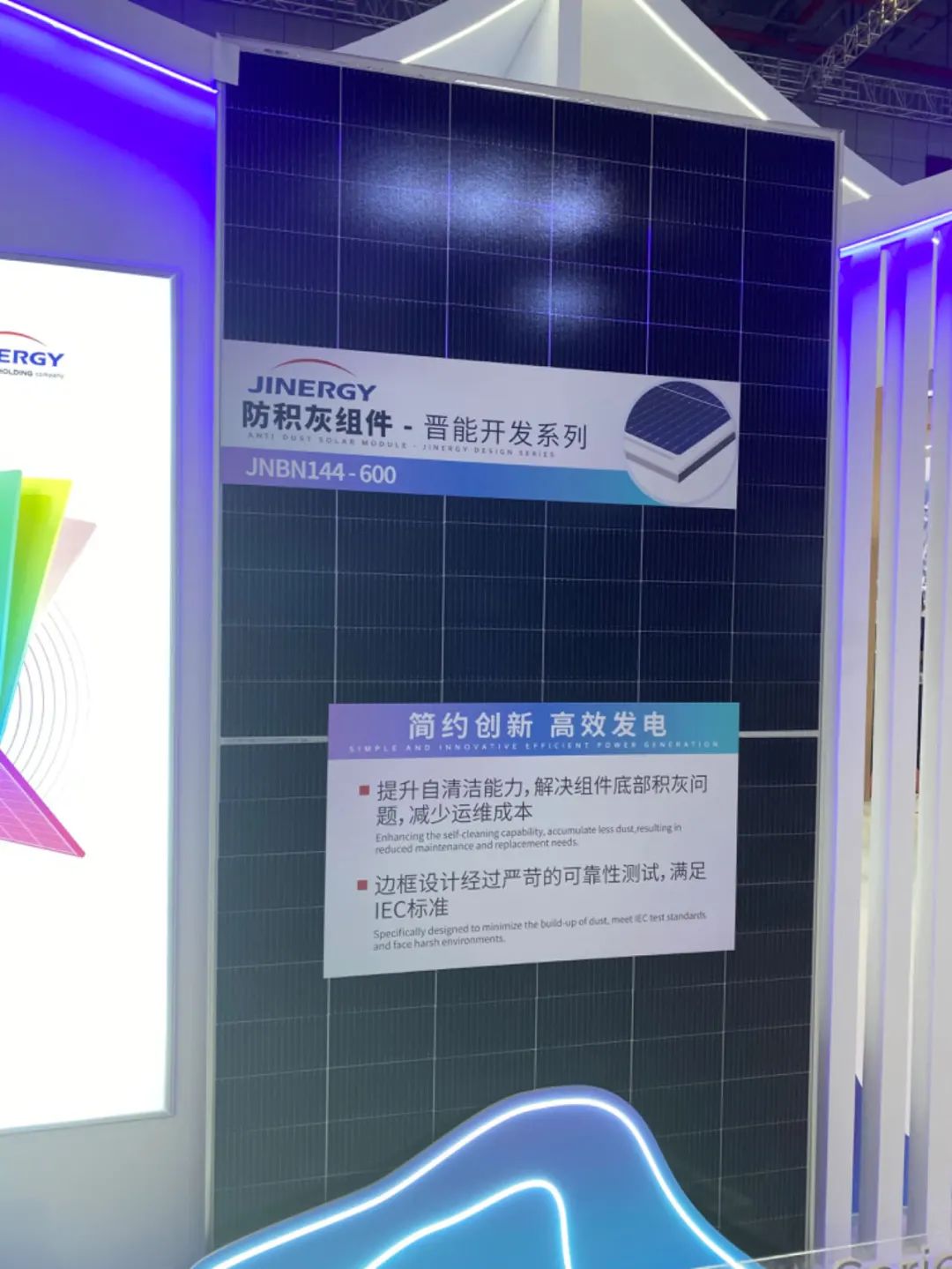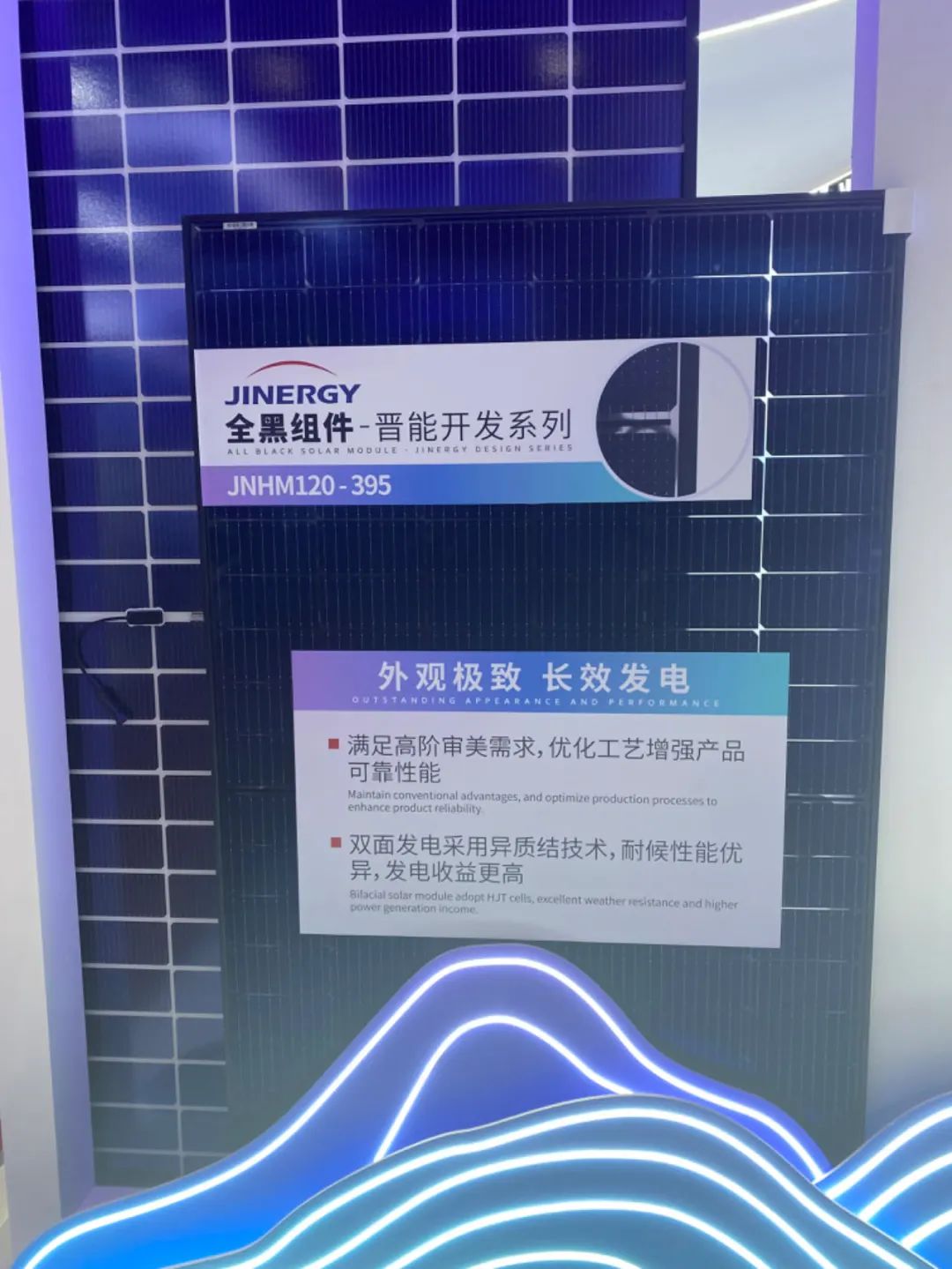 2024SNEC展会上,除了上述提到的海上光伏组件外,也出现了全黑组件、防积灰组件、彩色组件、农光互补组件等新品。