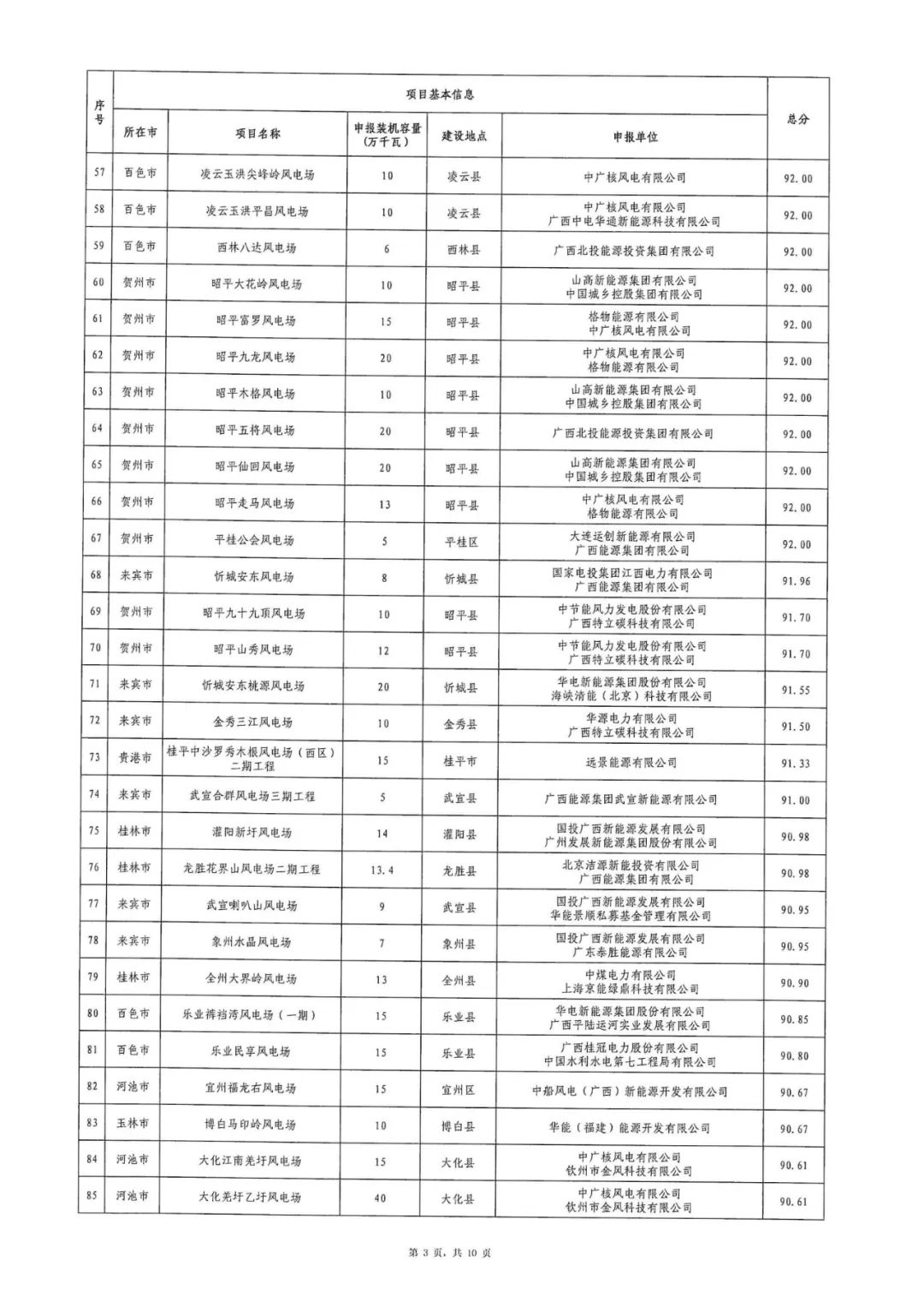 广西壮族自治区能源局关于2024年广西陆上风电、集中式光伏发电项目竞争性配置评分结果的公示