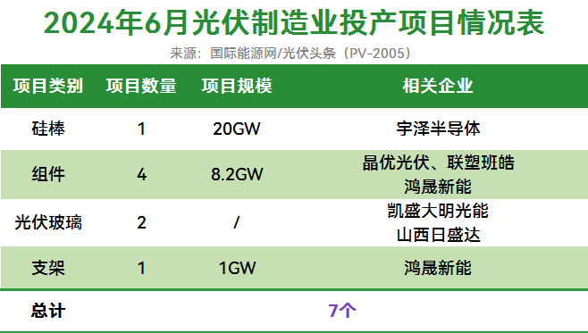 7个项目投产!20GW硅棒、8.2GW组件产能入市