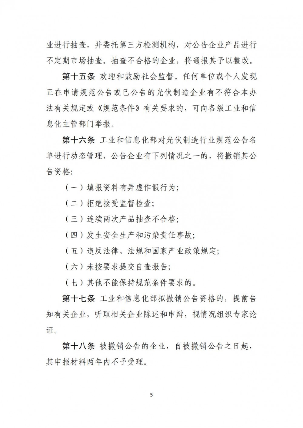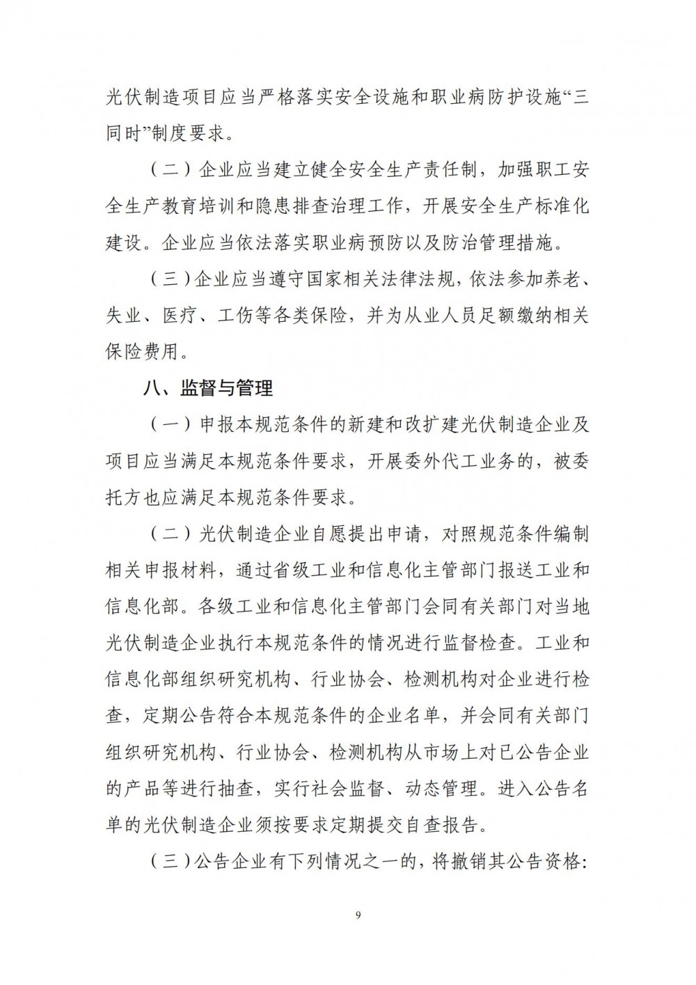 光伏头条(PV-2005)获悉,7月9日,工业和信息化部电子信息司对《光伏制造行业规范条件及公告管理办法(征求意见稿)》公开征求意见。