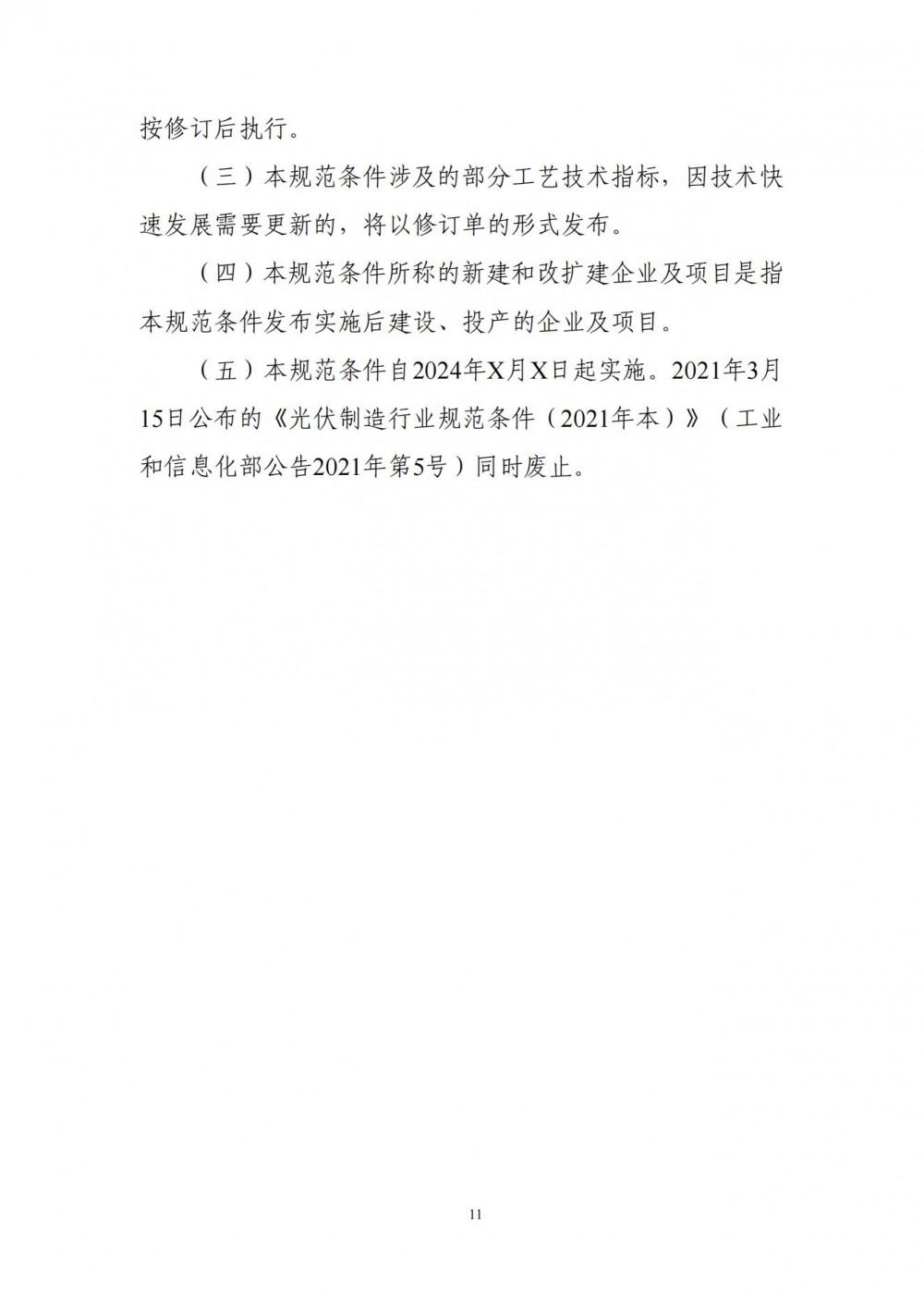 1.《光伏制造行业规范条件(2024年本)》(征求意见稿)