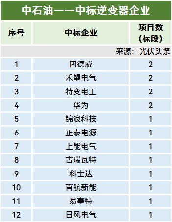 6月,中国石油天然气集团有限公司2024年一级物资供应商(61大类逆变器)新增准入项目确定了中标候选人,该项目分为三个标包,固德威、禾望电气、特变电工、华为、锦浪科技、正泰电源等12家企业入围。