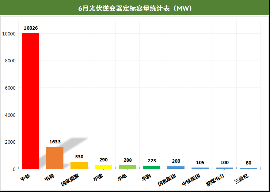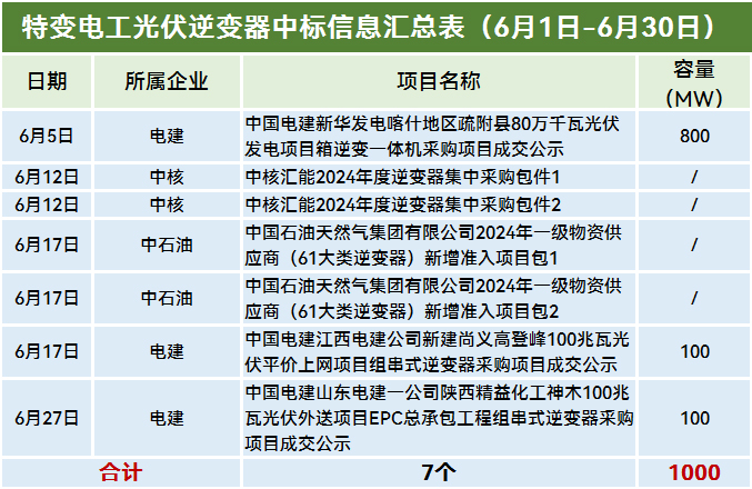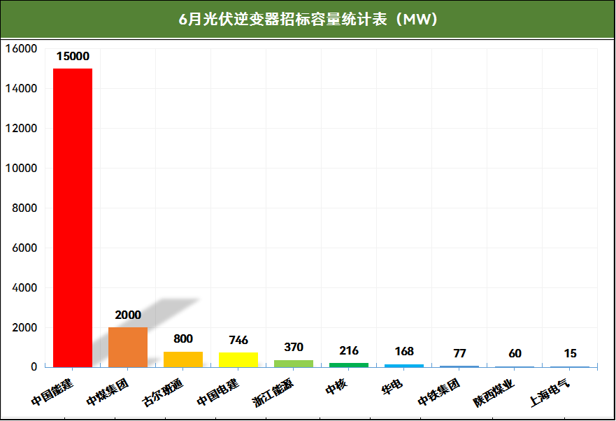 此外,6月,华能、华电、中节能均有项目定标,株洲变流成为最大赢家,包揽三家央企的逆变器招标项目。