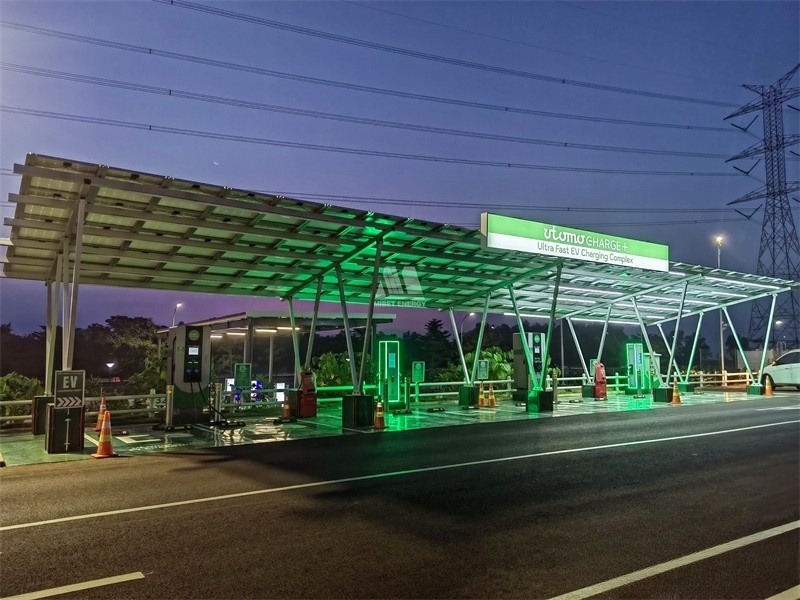 此外,技术团队还为印尼客户打造了光储一体的BIPV车棚系统,将建筑与光储结合,为客户提供量身定制的解决方案。系统可及时吸纳转化太阳能,为充电桩传输电力,实现能源高效利用,满足新能源车充电电能储备。
