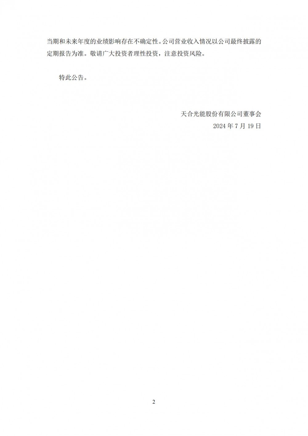7月18日晚间,天合光能发布关于在手订单情况的自愿性披露公告。