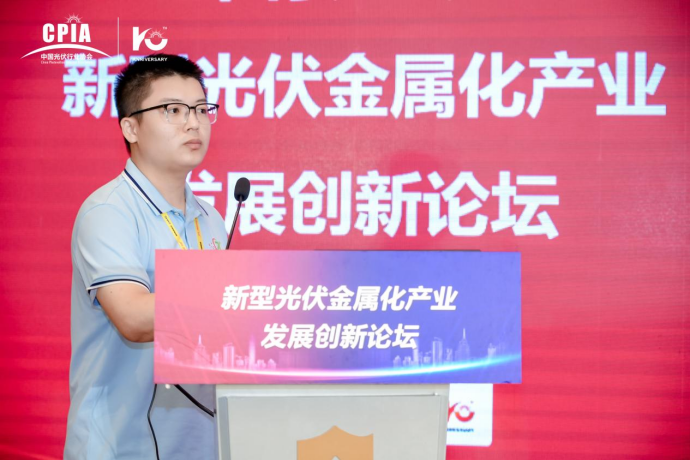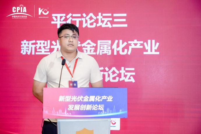 广东晟阳华创科技有限公司研发经理施少雄作“铜电镀技术开发及其在光伏HJT电池片生产的应用”报告。施总分别从光伏HJT铜电镀产业化难点、光伏HJT铜电镀产业化难点解决方案等方面进行了阐述。施总表示,铜电镀避免昂贵的白银原料,采用低价纯铜替代,可大幅降低成本实现无银化。银包铜作为降本过渡技术,未来一段时间会与铜电极技术并行。更长远来看,铜电镀会慢慢占据更大的份额。