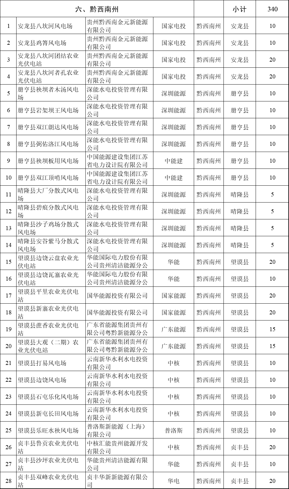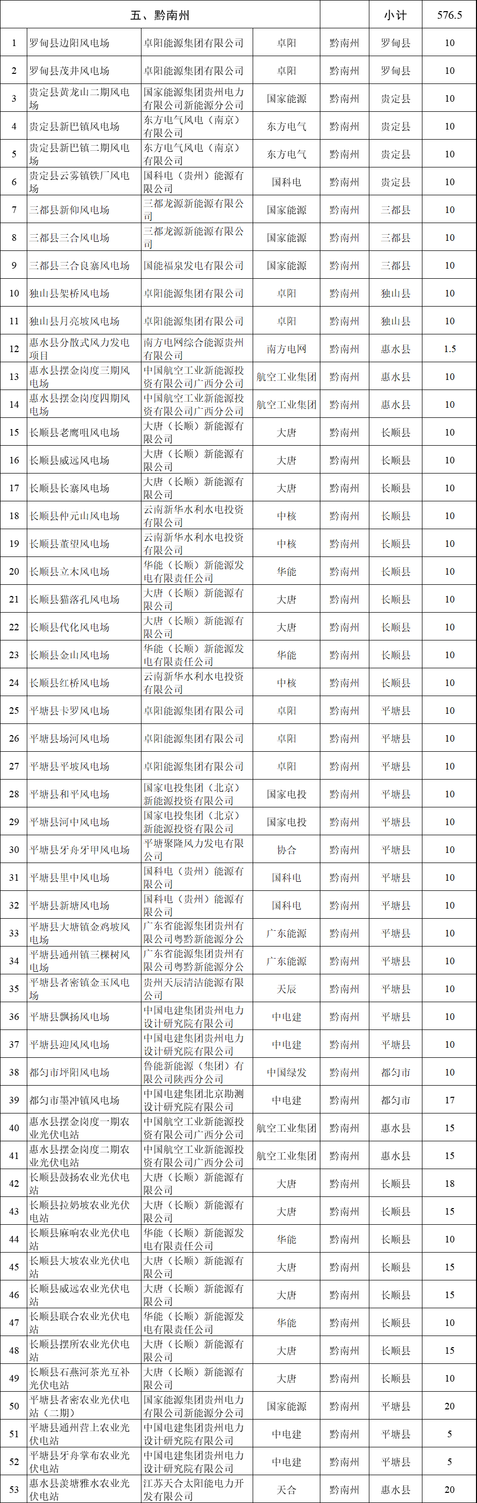 2024-04-30 7月29日,贵州省能源局发布《贵州省2024年度风电光伏发电建设规模项目计划(第一批)》。根据公示,总装机1635.3万千瓦。共包含161个风电项目,容量为1073.5万千瓦项目、44个光伏项目,容量共计561.8万千瓦。上述项目共分布在黔南州、六盘水市、黔西南州等6个地级市。