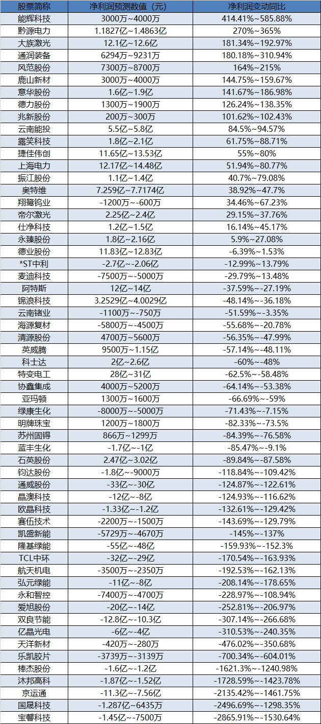 具体来看,能辉科技以高达585.88%的最大净利润预估增幅成为统计内58家企业中的最耀眼明星;上海电力则以超过12亿元的净利润预估领跑电站开发环节;兆新股份则成功扭亏为盈,预计净利润同比增幅在101.62%~102.43%,预计实现净利润200万元~300万元。