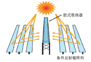 线性菲涅尔式太阳能热发电系统是利用靠近地面放置的多个一次反射镜,通过动态跟踪太阳运动,将太阳光反射到安装在高处的二次反射镜,通过二次反射,太阳辐射聚集到二次反射镜焦点处的真空集热管上,加热吸热流体,并通过热力循环进行发电的系统。