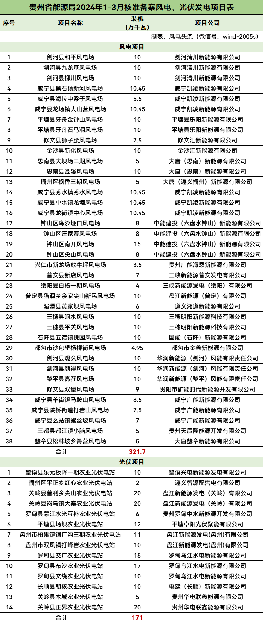 附件:贵州省能源局2024年1-3月核准备案风电、光伏发电项目表