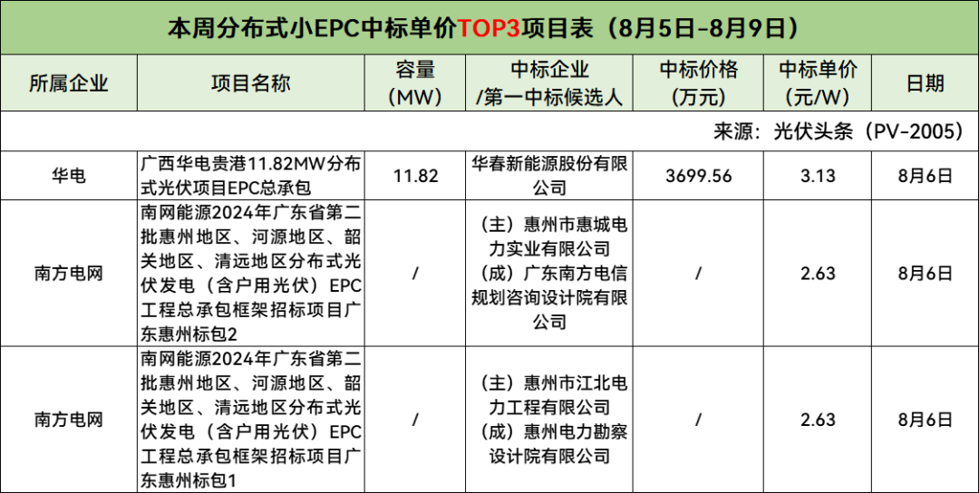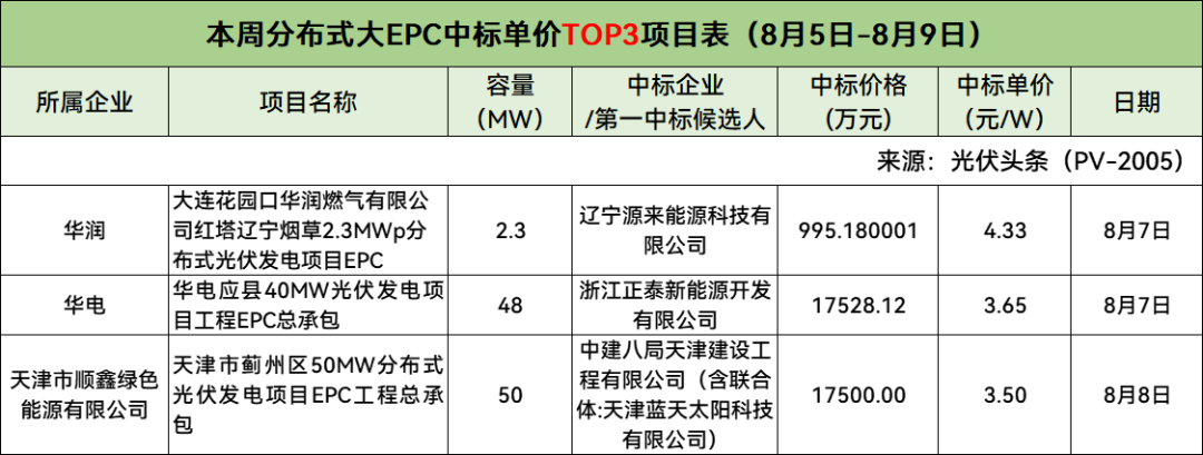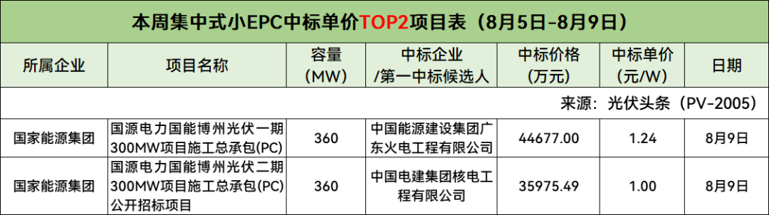 此外,本周分布式小EPC中标单价Top3、集中式小EPC中标单价Top2项目具体情况如下:
