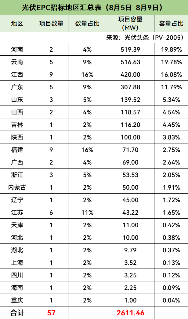 57个招标项目!装机规模2611.46MW