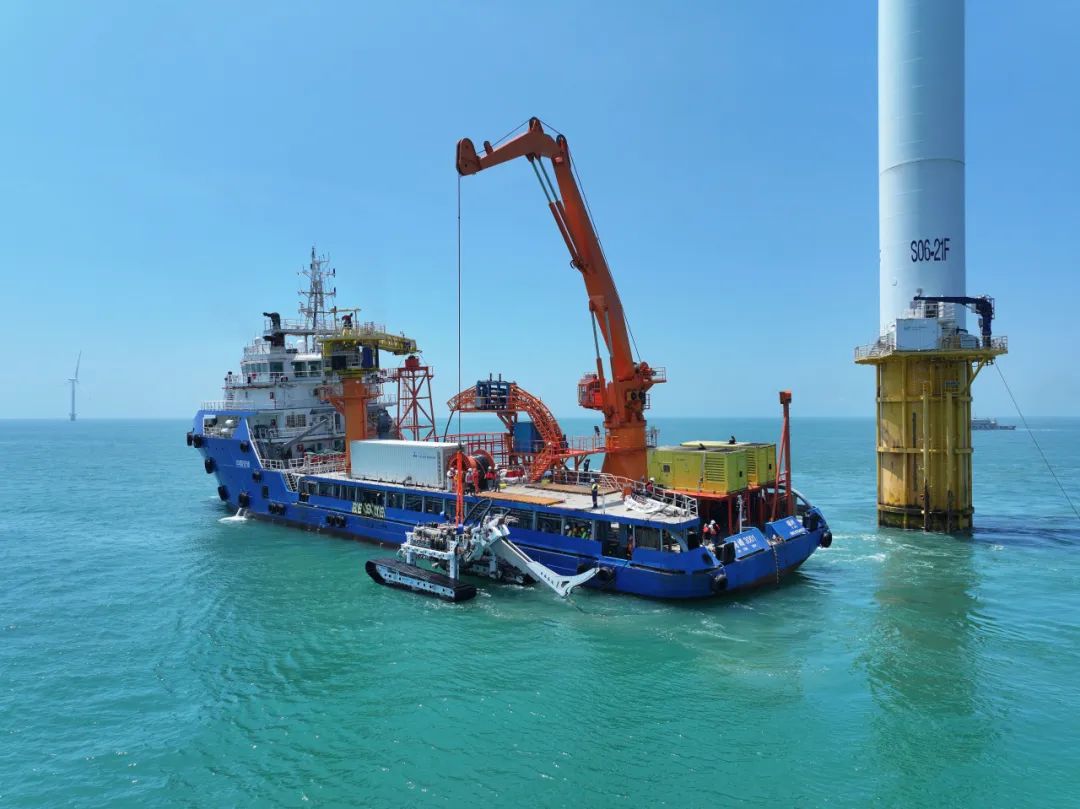 本次海缆敷设施工时间段正值台风高发季节,作业窗口期短,风场海域流速高,给船舶定位与挖沟机下水带来很大挑战。项目团队精心组织,统筹安排,凭借海峰3001先进的设备、精准的定位能力、强大的适应性和高效的作业能力,海缆敷设和冲埋的速度超过每小时200米,高效完成了海缆的敷设与冲埋作业。此次海缆敷设项目的成功实施,是中交海峰风电运用海峰3001成功实施海缆后冲埋项目后的又一重要突破。