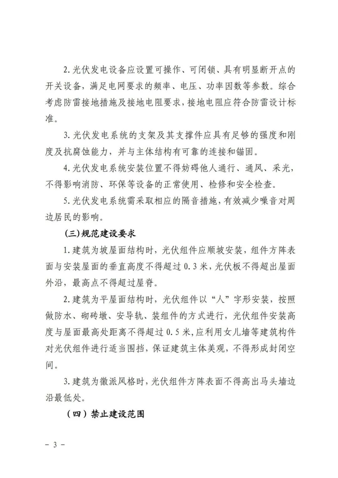 文件提出,屋顶分布式光伏发电项目三大规范建设要求: