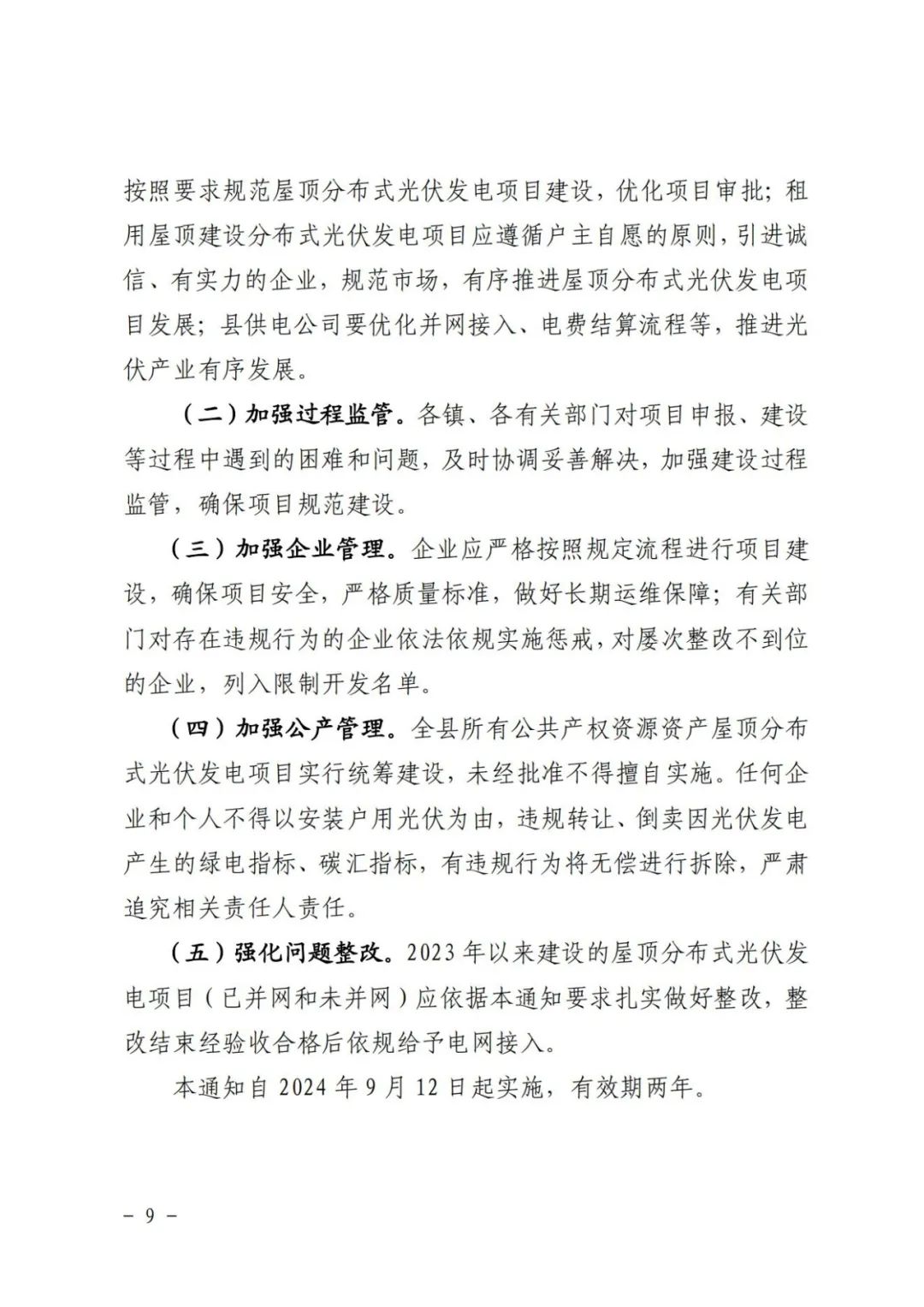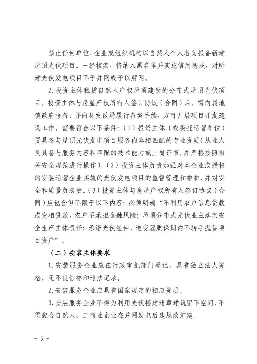 此外,文件明确,禁止任何单位、企业或组织机构以自然人个人名义报备新建屋顶光伏项目。一经核实,将纳入黑名单并实施信用惩戒,对所建光伏发电项目不予并网或予以解网。