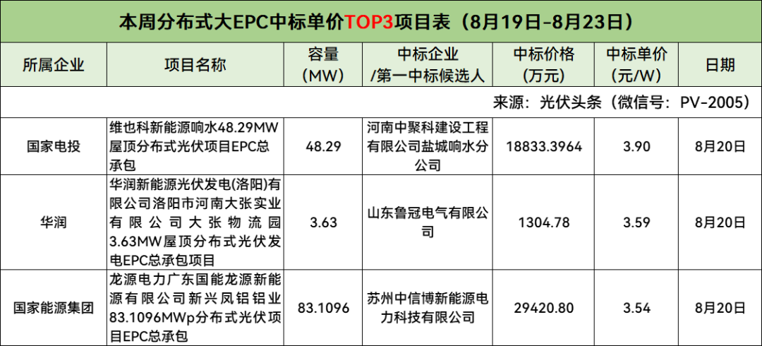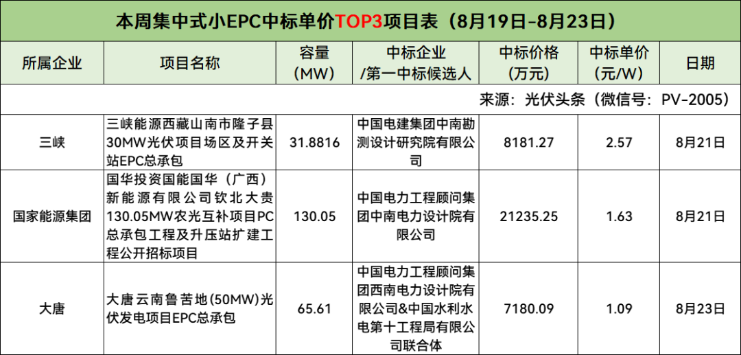 此外,本周分布式小EPC、集中式小EPC中标单价Top3项目具体情况如下: