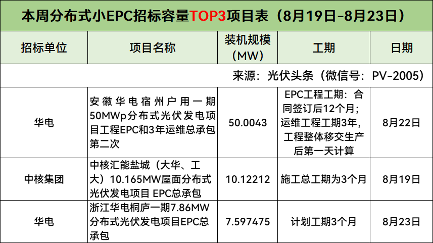 此外,本周分布式小EPC、集中式小EPC招标容量Top3项目具体情况如下: