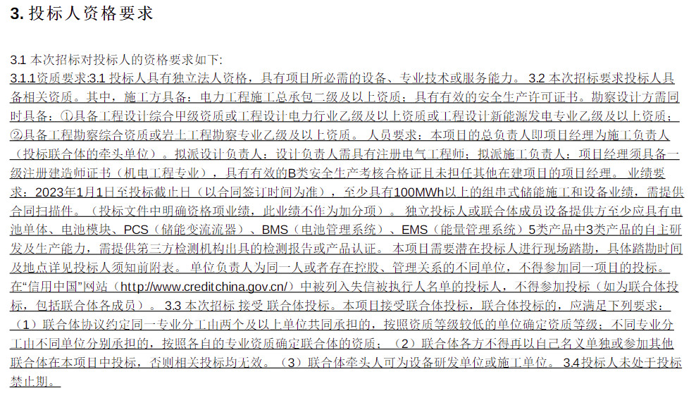 2024-04-30 网站获悉,9月2日,河北省深州市坤腾100MW/400MWh共享储能项目总承包(EPC)招标。要求投标人自2023年1月1日至投标截止日,至少具有100MWh以上的组串式储能施工和设备业绩。