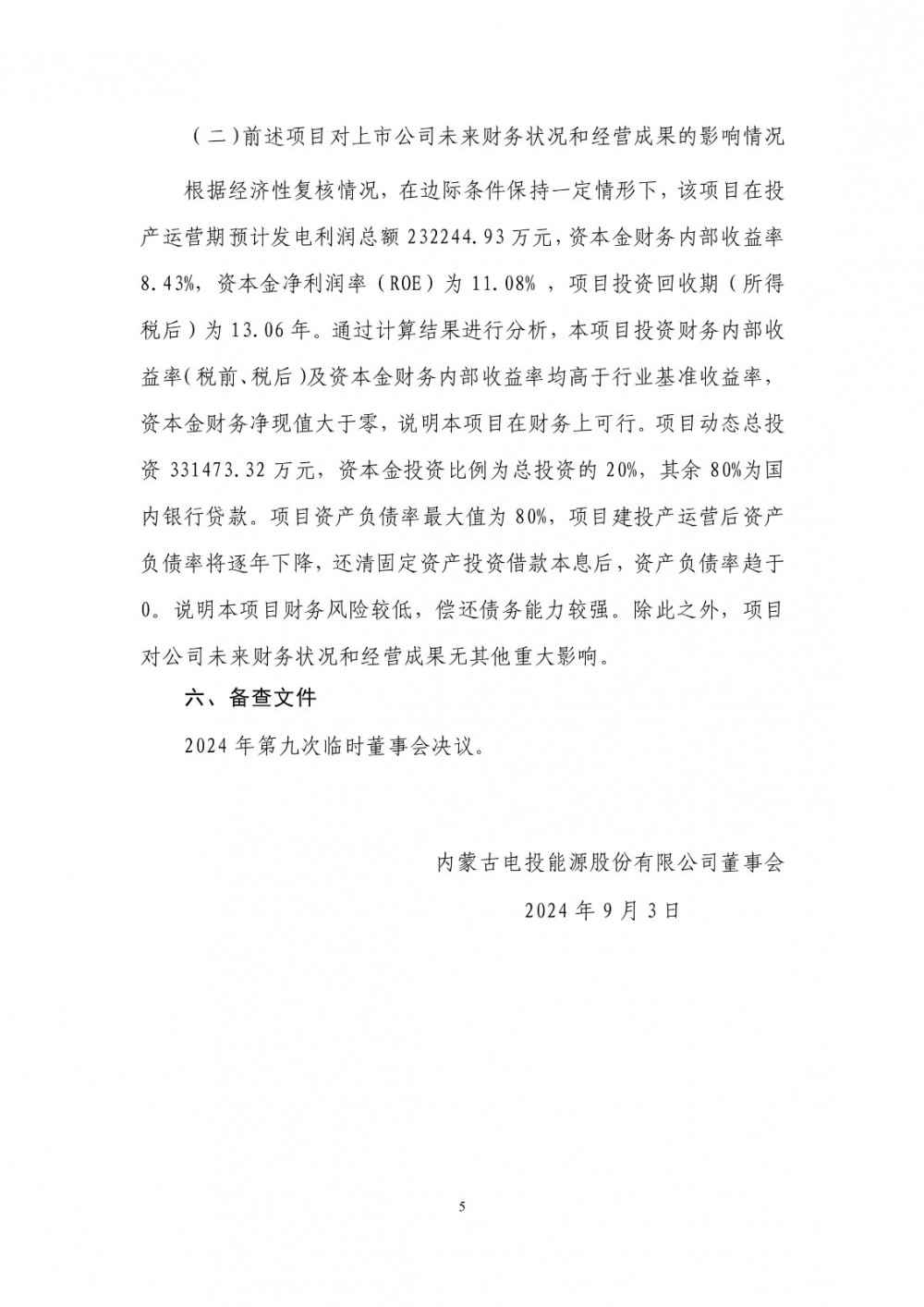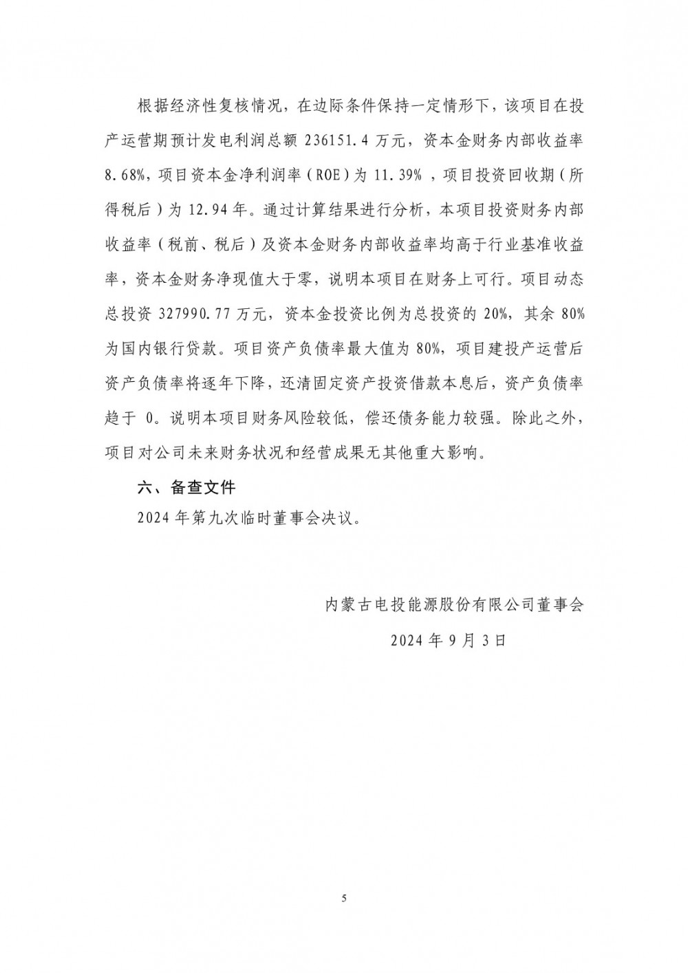 公告表示,内蒙古电投能源股份有限公司(简称电投能源或公司)2024 年第九次临时董事会审议通过了《关于电投能源参股投资建设乌兰布和东北部新能源基地先导工程100万千瓦光伏发电项目(一期)的议案》、《关于电投能源参股投资建设乌兰布和东北部新能源基地100万千瓦光伏先导工程项目(二期)的议案》。