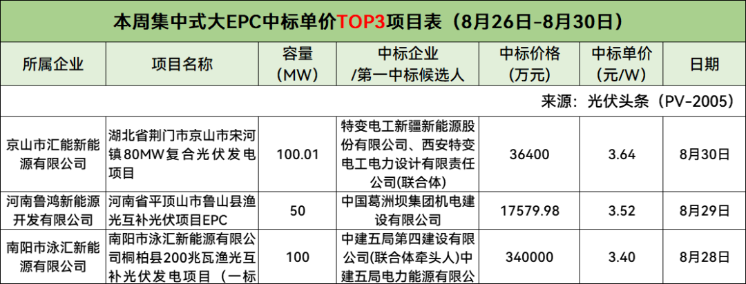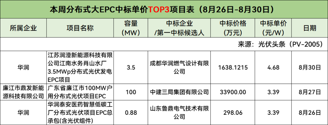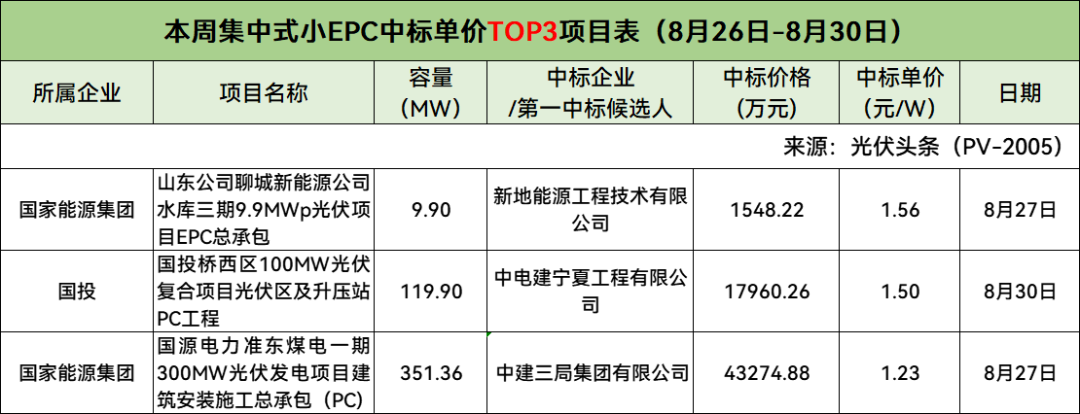 此外,本周分布式小EPC、集中式小EPC中标单价Top3项目具体情况如下: