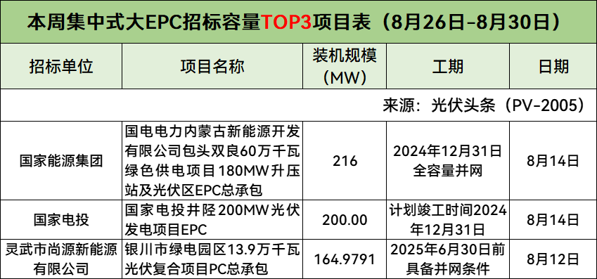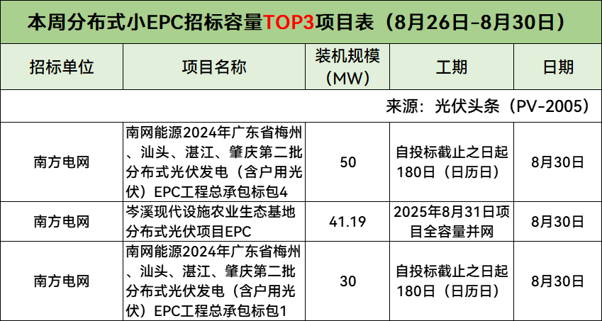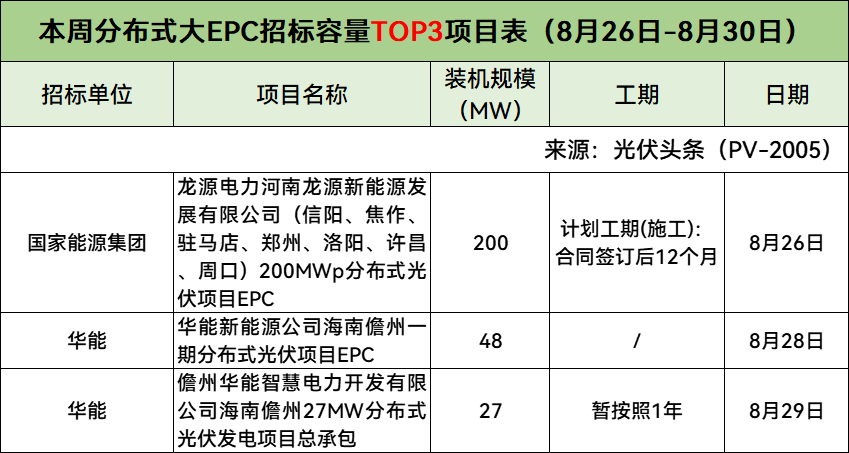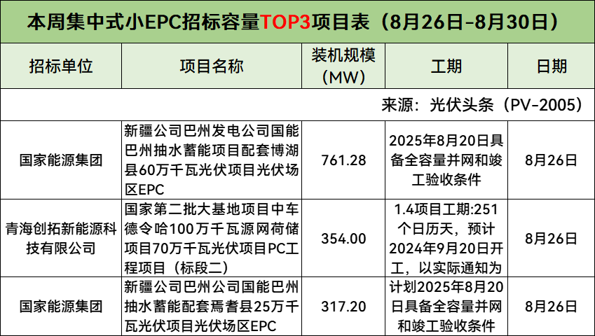 此外,本周分布式小EPC、集中式小EPC招标容量Top3项目具体情况如下: