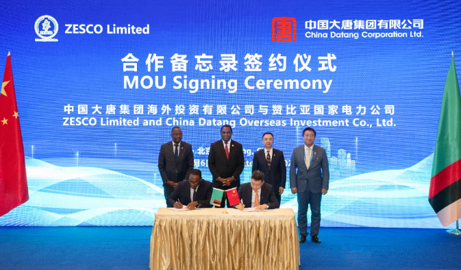 会谈后,双方共同见证大唐海投公司与赞比亚国家电力公司签署合作备忘录。