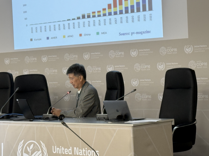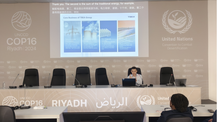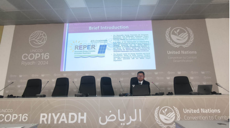 当地时间12月9日下午,《联合国防治荒漠化公约》(UNCCD)缔约方大会第16届会议(COP16)光伏边会“光伏赋能土地与人民——从贫乏到繁荣 水、粮食和生态系统修复的综合解决方案”在沙特利雅得UNCCD COP16场馆举行。本次边会由清华大学社科学院能源转型与社会发展研究中心主办,水电水利规划设计总院联合主办。