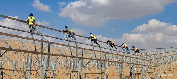 阿拉善高新技术产业开发区100万千瓦光伏项目是内蒙古能源集团今年上半年新开工的2000多万千瓦新能源重点项目之一,位于阿拉善左旗东部的沙漠区,东侧紧邻乌海市,日照时间3300小时左右,光资源丰富,建设容量为100万千瓦,共设303个分区,采用“分块发电,集中并网”,于5月份全面建设,建设工期历时8个月,为实现“当年开工、当年建成、当年并网发电”的既定目标再添“注脚”。至此,内蒙古能源集团在运总装机容量突破2100万千瓦大关,达2141万千瓦,创出新高。