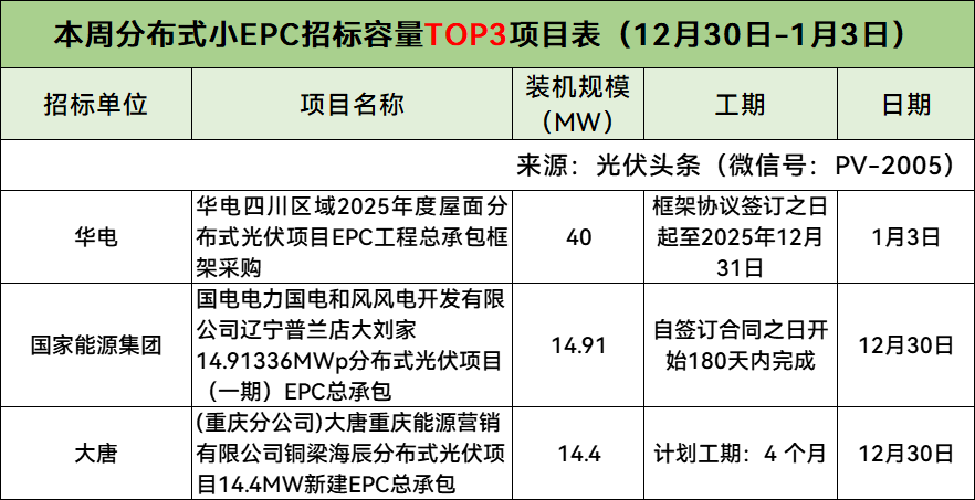 此外,本周分布式小EPC、集中式小EPC招标容量Top3项目具体情况如下: