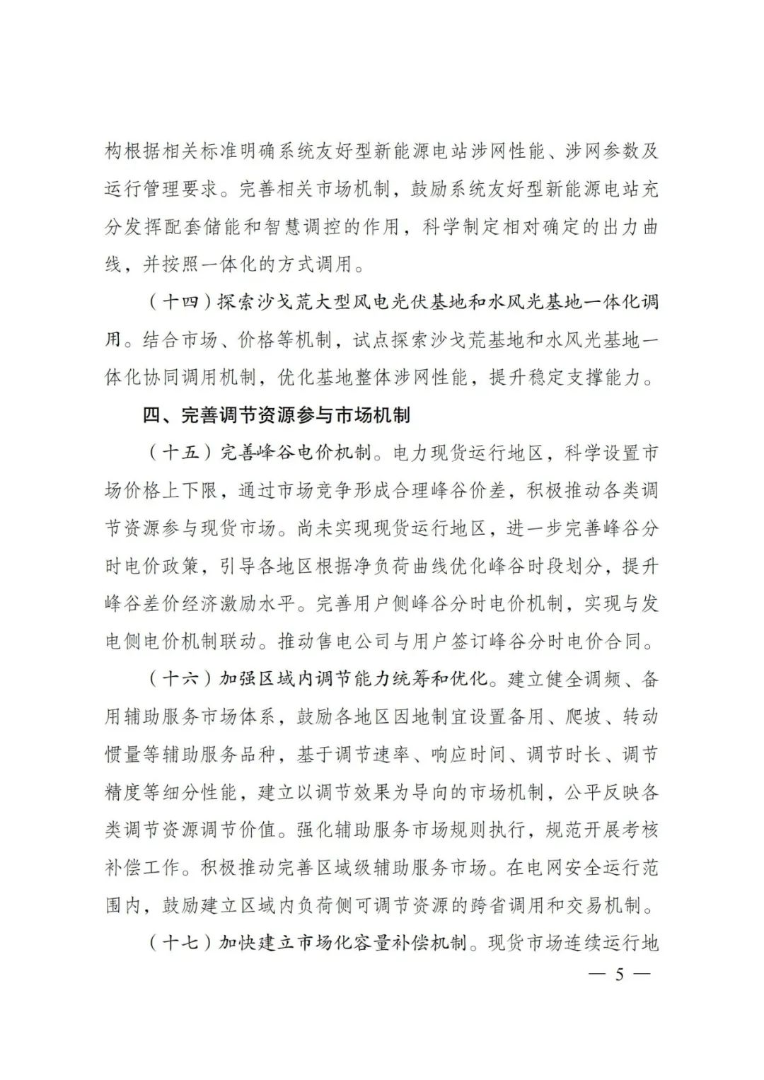 文件明确,要探索沙戈荒大型风电光伏基地和水风光基地一体化调用。结合市场、价格等机制,试点探索沙戈荒基地和水风光基地一体化协同调用机制,优化基地整体涉网性能,提升稳定支撑能力。