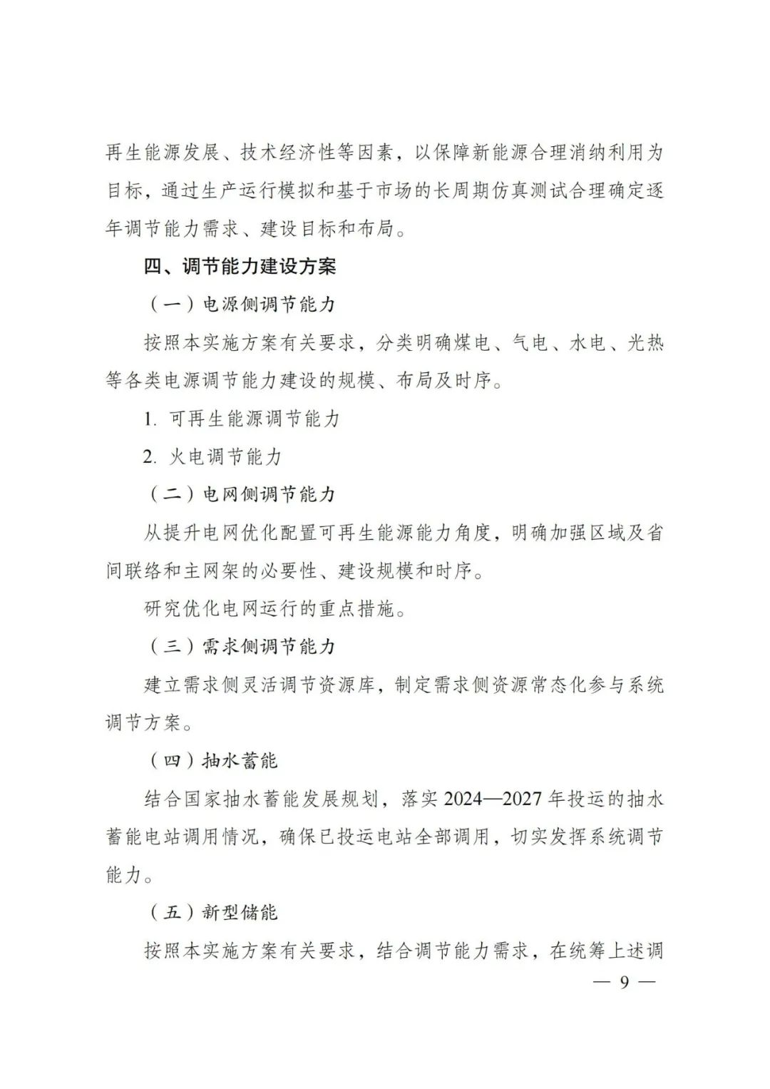 文件指出,到 2027 年,电力系统调节能力显著提升,各类调节资源发展的市场环境和商业模式更加完善,各类调节资源调用机制进一步完善。通过调节能力的建设优化,支撑2025—2027 年年均新增2亿千瓦以上新能源的合理消纳利用,全国新能源利用率不低于90%。
