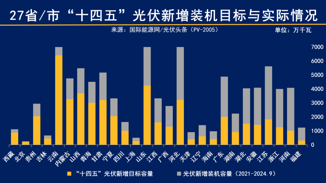黑龙江、重庆、陕西、新疆4省市则未明确“十四五”光伏新增目标。