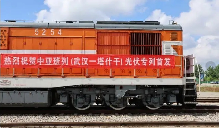 2024-04-30 5月23日上午10时30分,首趟中亚班列(武汉塔什干)光伏专列缓缓启动,一路向西开往乌兹别克斯坦首都塔什干。此次专列开行为高附加值、高科技产品出口中亚搭起一条高效稳定的陆路物流通道。