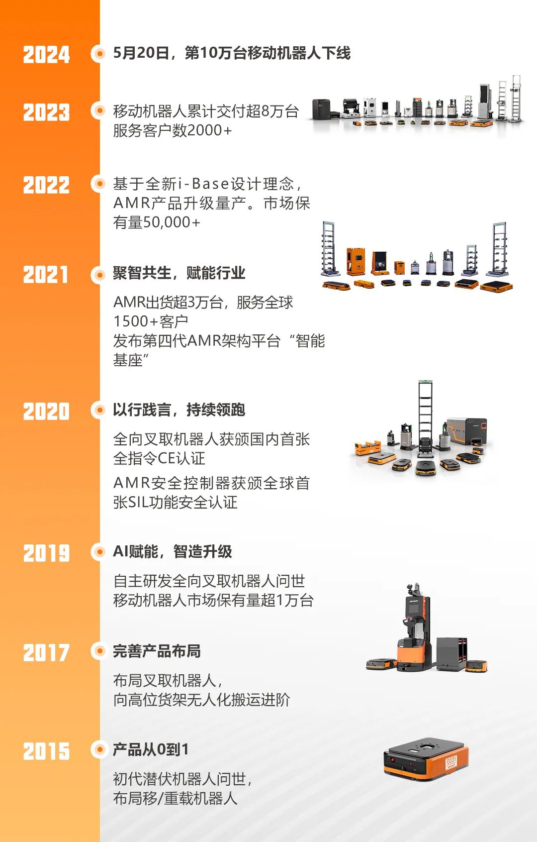 2021年,公司发布了新一代架构平台“智能基座”及该架构下的移动机器人,进一步提升了AMR的智能化和自主化水平。