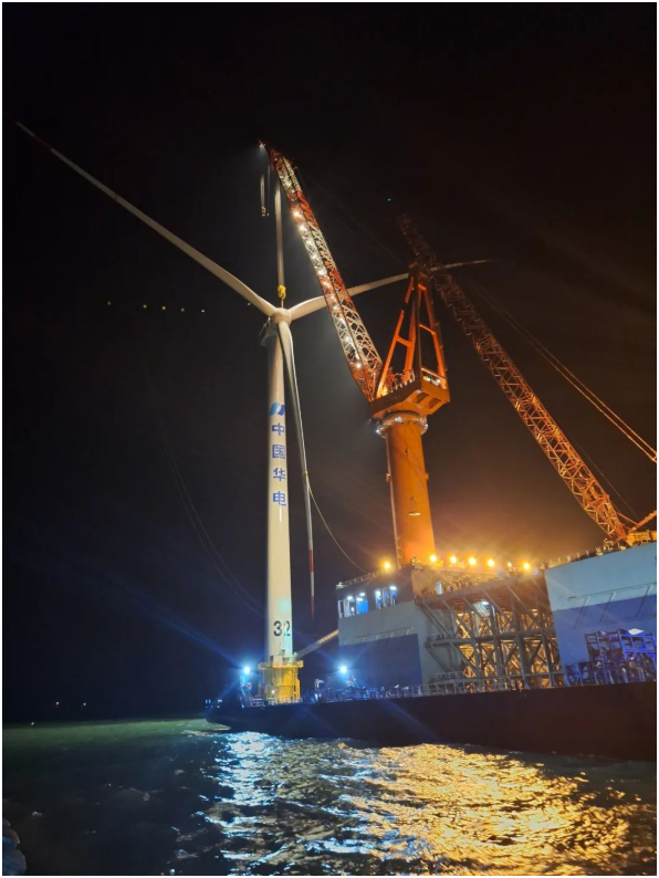 浙江华电玉环1号海上风电项目位于玉环市披山岛西北侧近海海域,是浙江省台州市首个海上风电项目,项目南区总装机容量75MW,安装10台东方风电7.5MW直驱型风电机组,是华电集团海上风电装机容量突破1000MW的标志性工程。项目于2023年11月开工建设,2024年5月29日完成全部风机吊装。