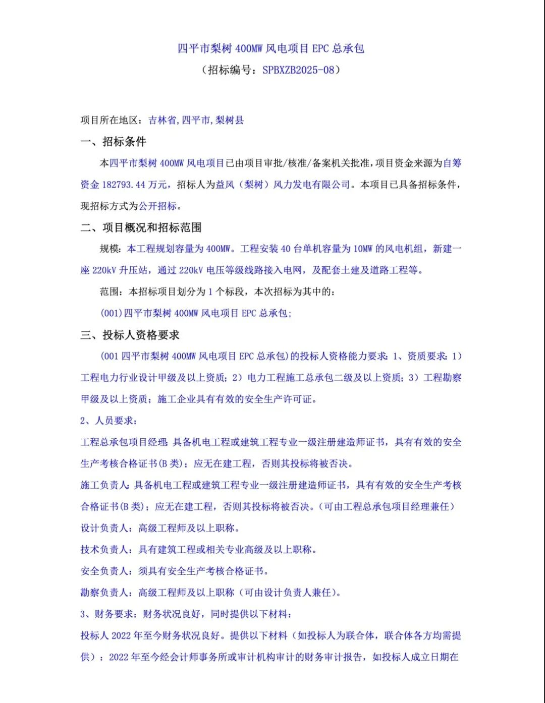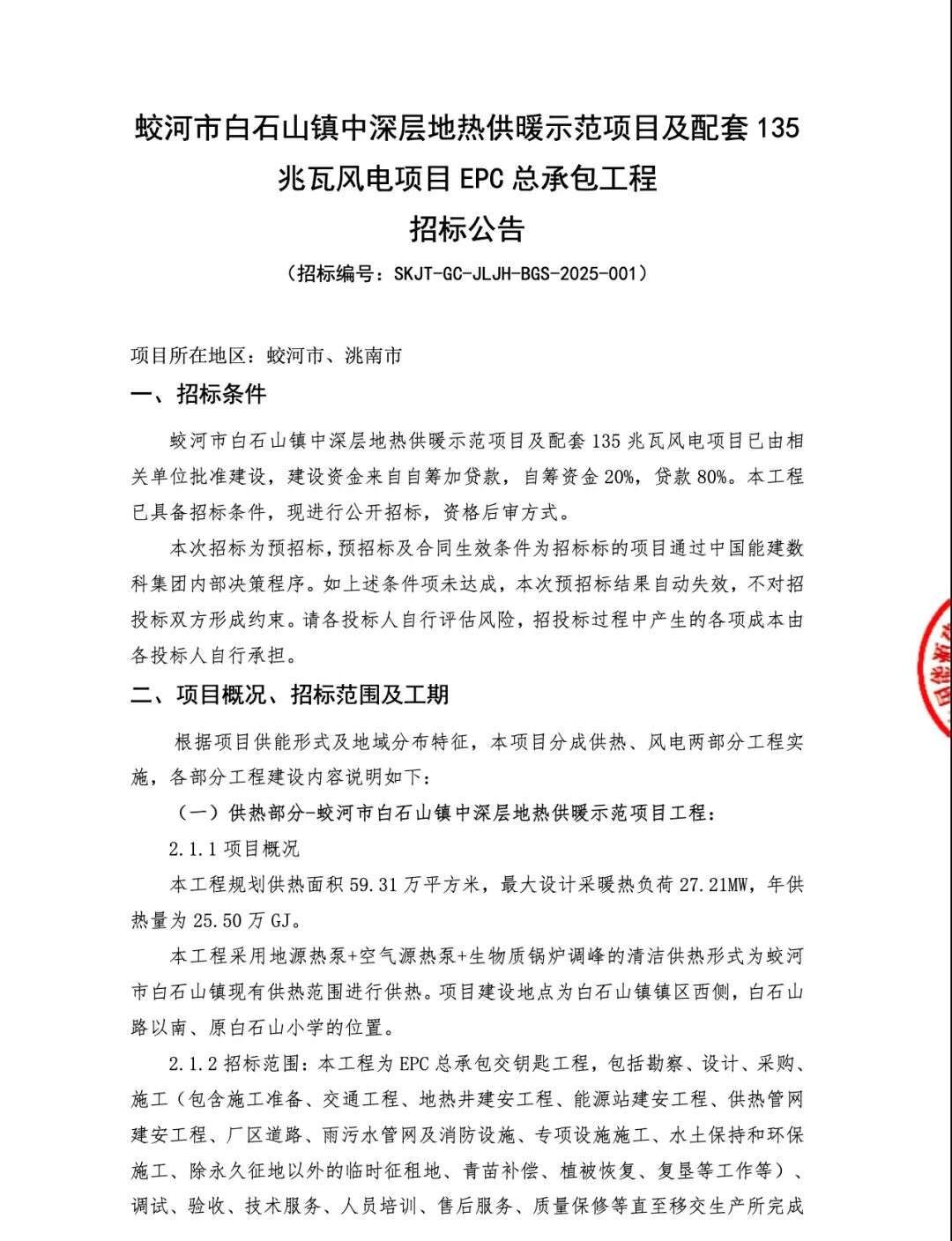 6个项目中,有4个项目允许联合体中标,只有蛟河市白石山镇中深层地热供暖示范项目及配套135兆瓦风电项目EPC总承包工程和闽宁““绿电小镇”风电项目EPC总承包招标不允许联合体中标。